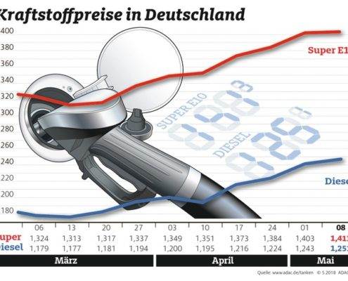 Foto: ADAC e.V.Die Spritpreise steigen und steigen. Gegenüber der vergangenen Woche kletterte der Preis für einen Liter Super E10 nach Angaben des ADAC um 2,7 Cent auf durchschnittlich 1,461 Euro. Diesel-Kraftstoff verteuerte sich ebenfalls…