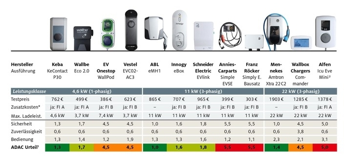 Der ADAC warnt vor den beiden im Internet erhältlichen Billiggeräten von Annies-Carparts und Franz Röcker (Note jeweils 5,5). Die Ladeboxen schalten bei einer Fehlermeldung den Strom nicht ab. Dies ist extrem gefährlich und kann zu einem Brand oder zu Personenschäden führen.