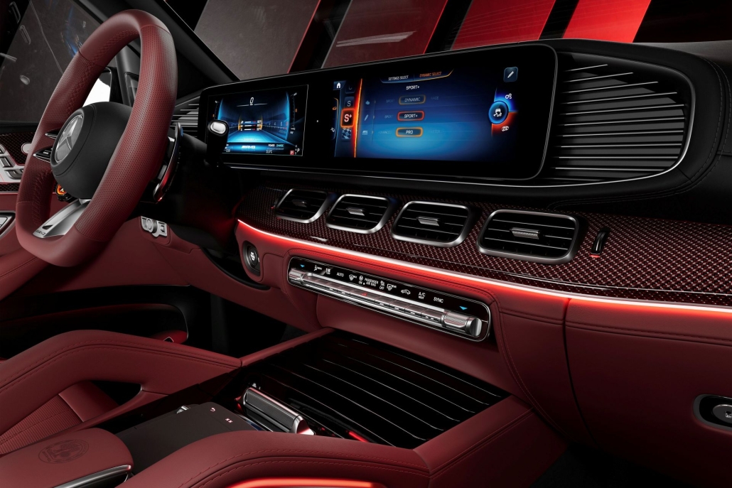 Das zentrale optische Merkmal der „MANUFAKTUR Arctic Silver“-Edition ist der erstmals verfügbare AMG- und editionspezifische Mattlack MANUFAKTUR hightechsilber magno. Dieser ausgesprochen exklusive Farbton bildet einen markanten Kontrast zu den gezielt eingesetzten schwarzen und roten Akzenten. Die 22 Zoll – für GLE SUV und Coupé – und 23 Zoll für den GLS großen Schmiederäder im Vielspeichendesign sind in Mattschwarz lackiert und werden von roten Felgenhörnern veredelt. Radnabenabdeckungen mit AMG Logo und Lorbeerkranz-Elementen sowie rote Bremssättel an Vorder- und Hinterachse unterstreichen den sportlich-eleganten Auftritt.