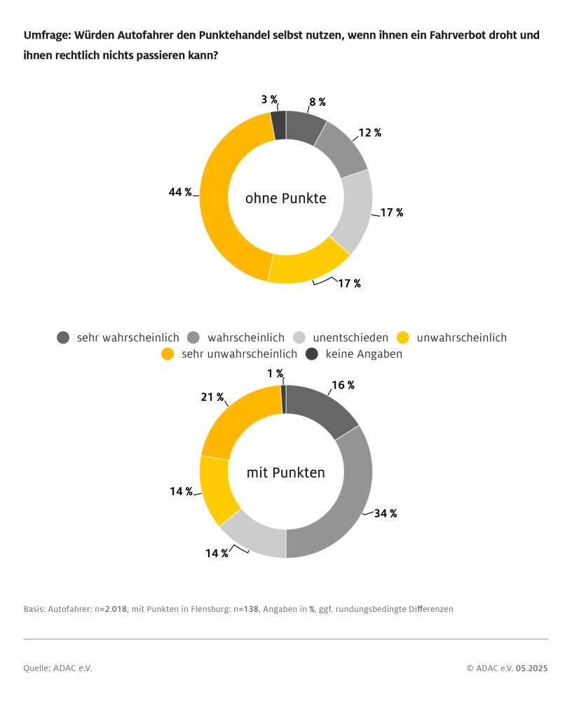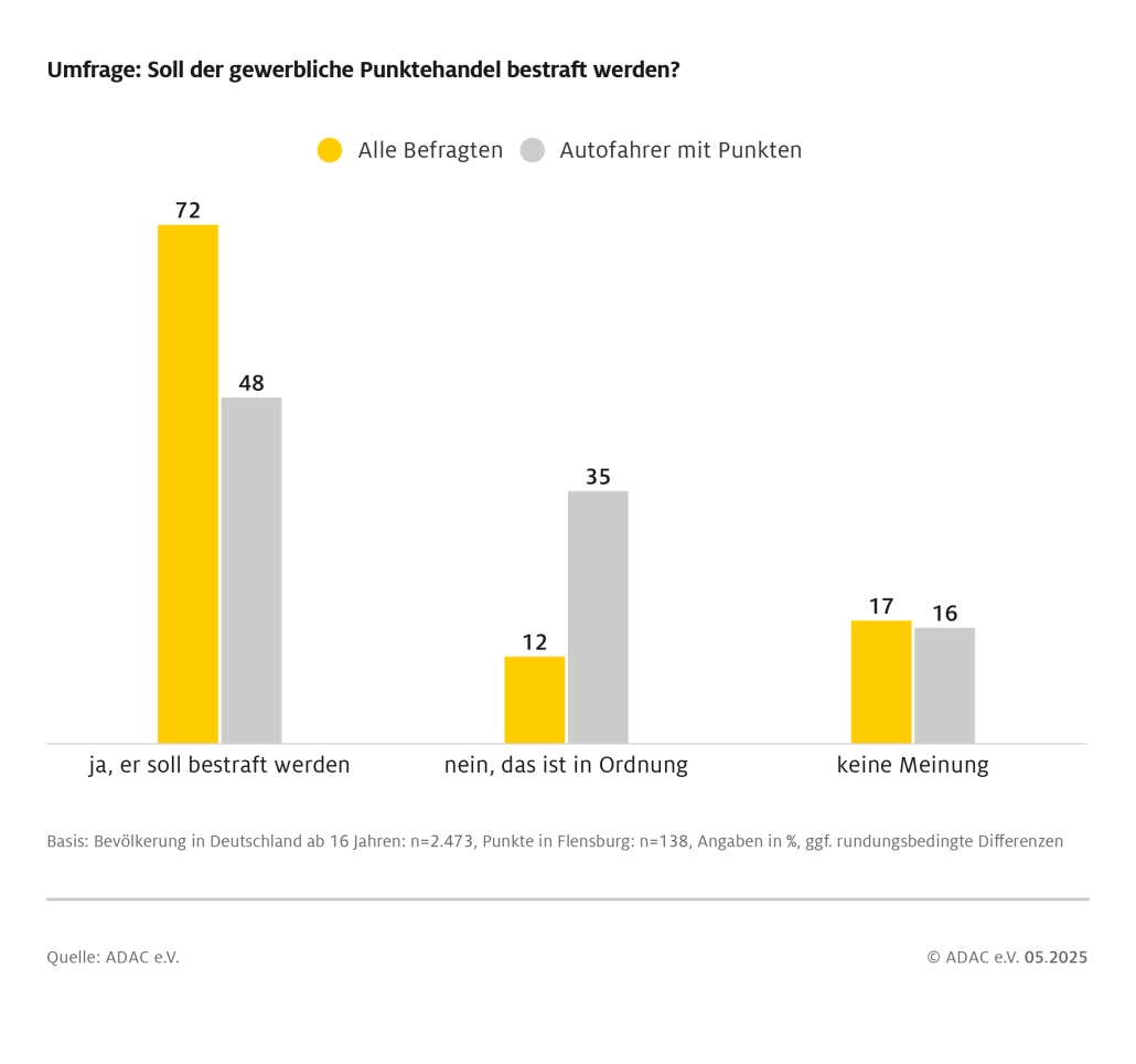 Die Umfrageergebnisse offenbaren zudem eine ambivalente Haltung: Zwar befürworten 72% aller Befragten eine Bestrafung des gewerblichen Punktehandels, doch bei Fahrern mit einem bereits belasteten Punktekonto sinkt diese Zustimmung auf 48%. Bemerkenswerte 35% dieser Gruppe sehen keinen Grund für eine Sanktionierung. Besonders beunruhigend aus Sicht des ADAC: Die Hälfte der Fahrer mit Punkten würde einen solchen Dienstleister wohl in Anspruch nehmen, um ein Fahrverbot zu vermeiden, solange keine rechtlichen Konsequenzen drohen.