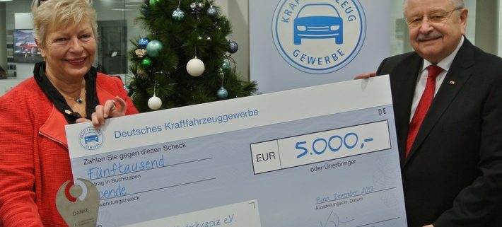 Weihnachten ist traditionell immer die Zeit der Geschenke und, das ist nicht nur im Fernsehen immer so: Die Zeit der Spenden für einen guten Zweck. Im KFZ Gewerbe ist dieses keineswegs anders. Auch hier finden zu Weihnachten die meisten Spendenaufrufe und Spendengaben statt. So übergab ZDK-Präsident Jürgen Karpinski in Frankfurt am Main einen Scheck über 5.000 Euro an Sabine Kraft, Geschäftsführerin des Bundesverbands Kinderhospiz mit Sitz im Baden-Württembergischen Lenzkirch.