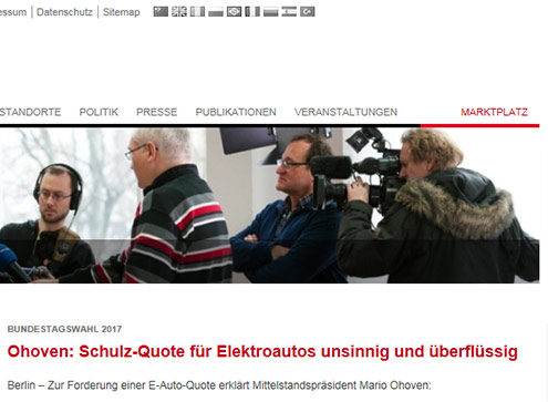 Mittelstandspräsident Ohoven findet E-Auto Quote unsinnig.