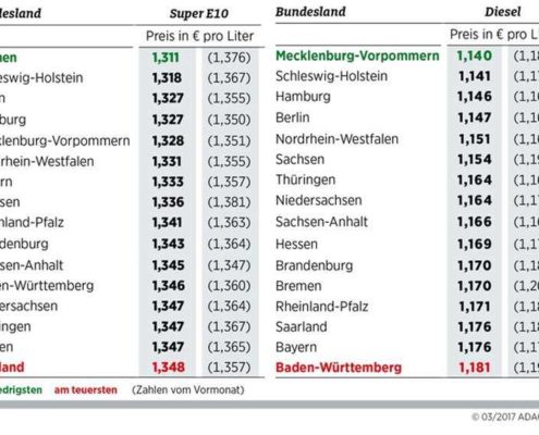 Kraftstoff Abschlussbetrachtung für März 2017