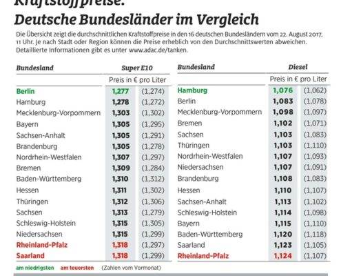 Foto: ADACRheinland-Pfalz und das Saarland lässt Autofahrer bei den Spritpreisen deutschlandweit am heftigsten „bluten“. Günstigen Sprit – zumindest verhältnismäßig gibt es derzeit - in den Stadtstaaten Berlin und Hamburg.…
